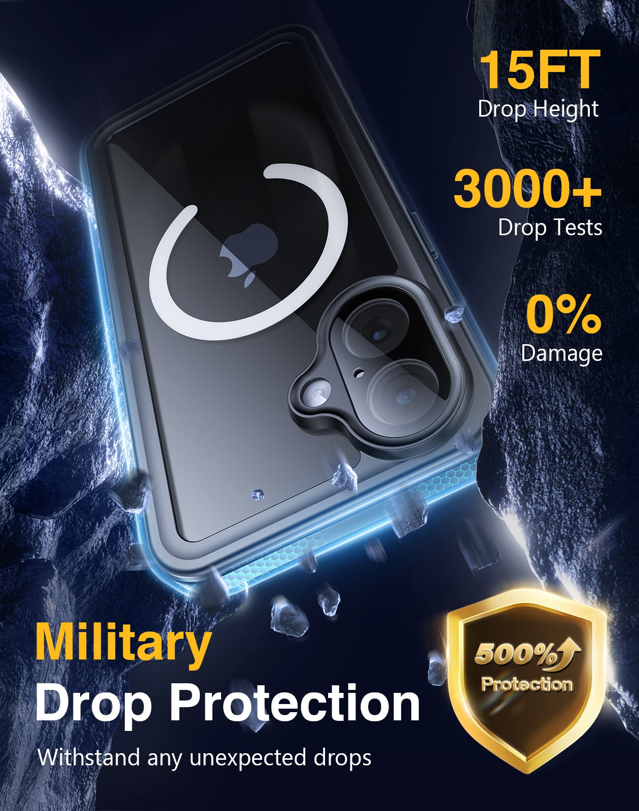 - Lanhiem for iPhone 17 waterproof case - IP68 certified to keep moisture out even when fully submerged (Please NOTED that conduct a waterproof test according to the instructions before use)