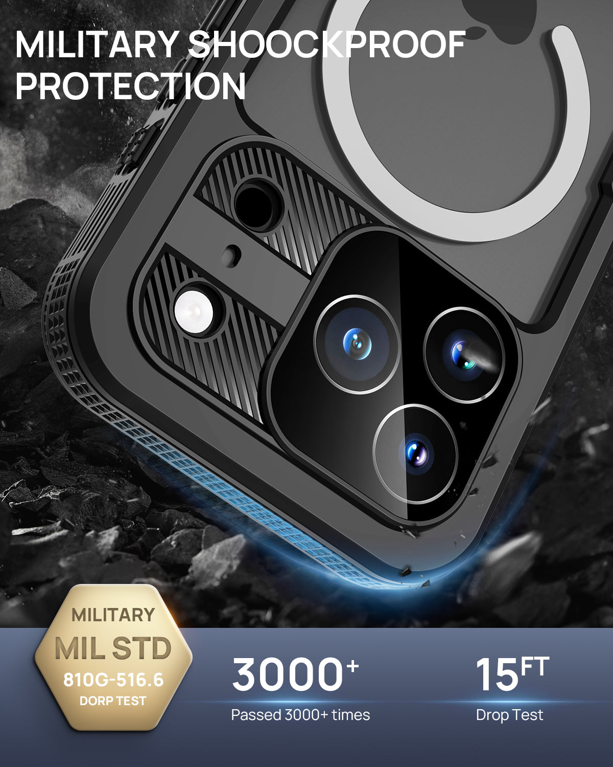 - Heavy Duty Rugged Shockproof Protection - Military Grade Design With 16FT - Full Body Protector case built in screen protector and camera protection, anti scratch, dust, drop, water, snow, dirt, sand and snow